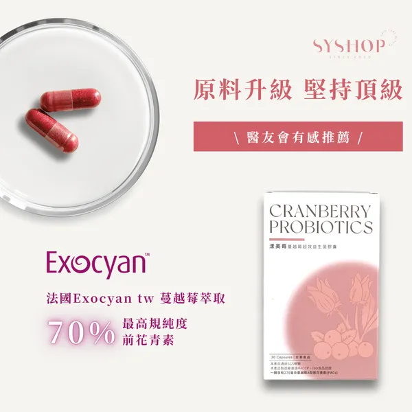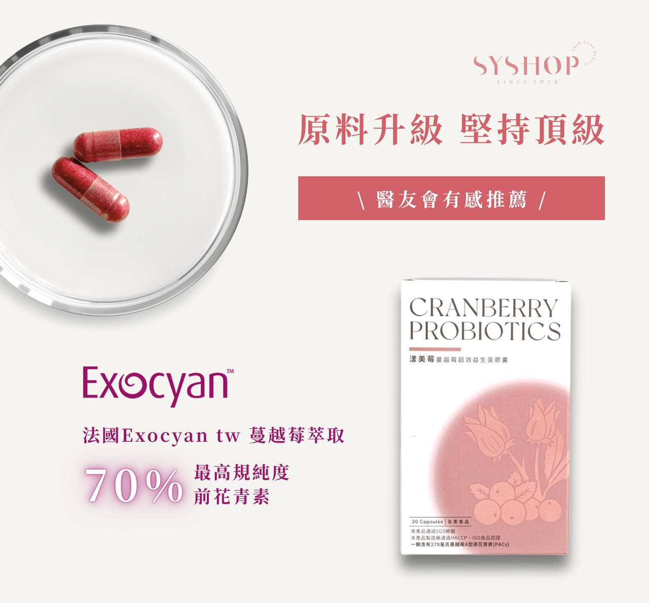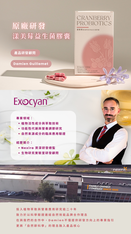 選用歐洲原廠頂級蔓越莓原料法國 Exocyan®