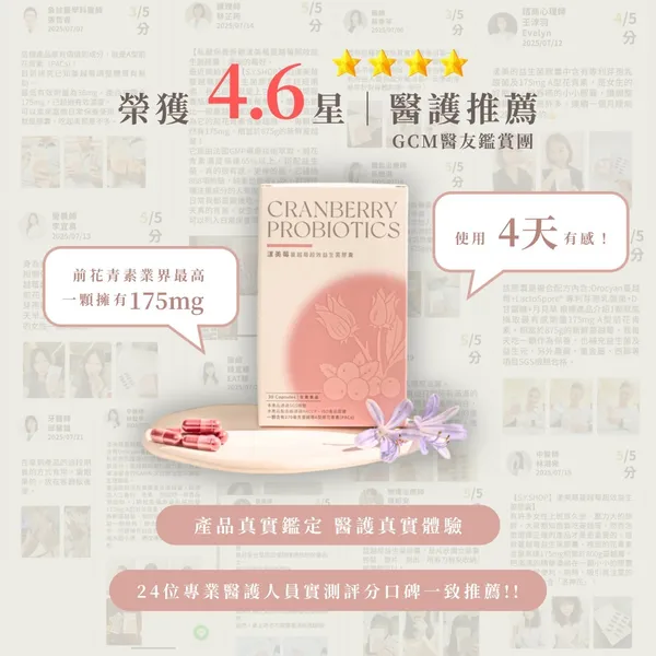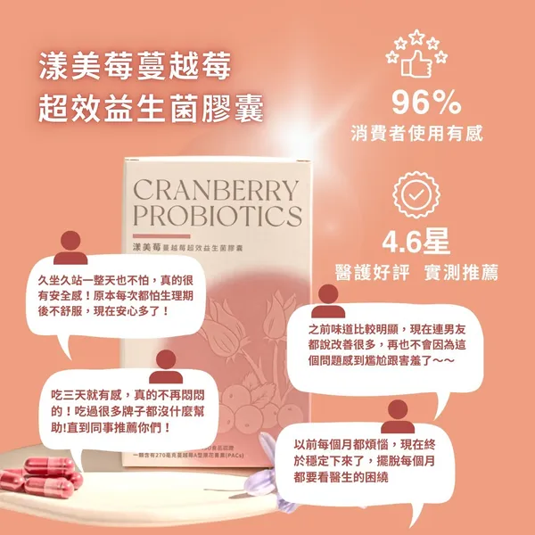 【漾美莓蔓越莓超效益生菌膠囊】