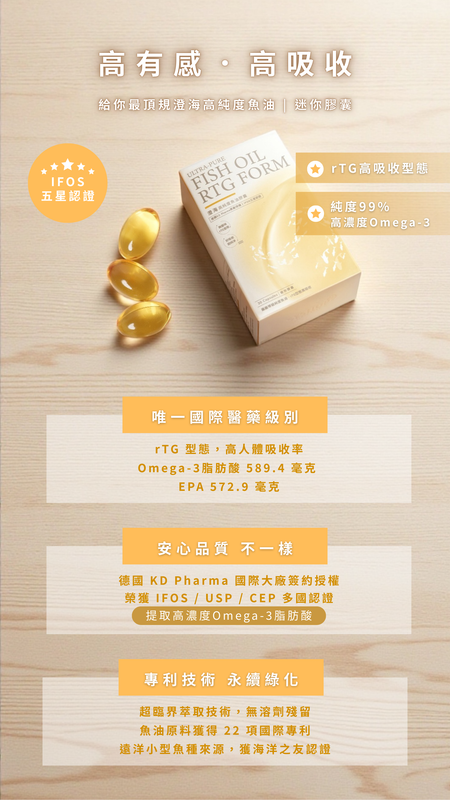 特色|97%高濃度 Omega-3 × 德國KD Pharma原廠授權 × IFOS五星認證